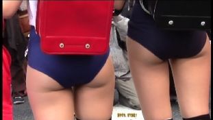 白いパンツのチラ見え・モロ見え(20分)。青い衣装の子はスクール水着2人組を挟んでけっこう追いかけました(合計10分)。