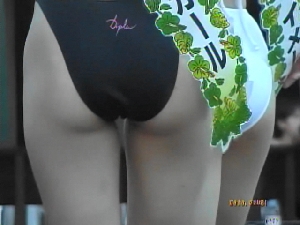 『こちらは、自前の水着を着ての審査で、特に過激な企画はありませんでしたが、自己紹介の時や、整列した時の水着からこぼれるヒップラインの観察は、なんともいえない愉しみでもありました。よく見れば、*園通りコンテストでも見たミスも出場していました。閉会時に、選出されたミスたちが勢揃いすると、壮観なヒップの品評会と化しました』