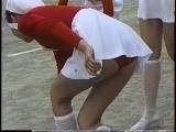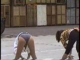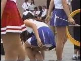 待機中のバトンちゃんをちょい押さえたあと、今度は、レオタードにジャケットを羽織った、つまり下半身レオタ丸出しお姉さまたちを