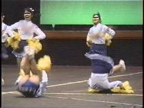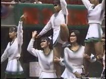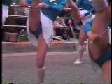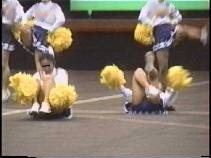 (↓ 脚を上げ過ぎてひっくり返ったのじゃありませぬ)の女子大生チアーと黒レオタード網タイツちゃんたちを初め、ロングスカートがダンスの勢い余ってパンモロ化しちゃったちゃんも。
