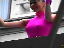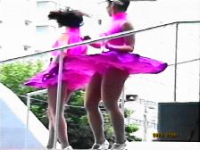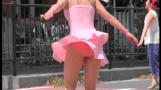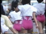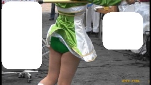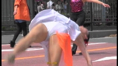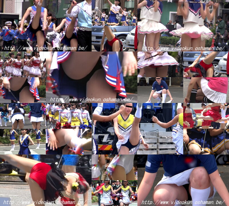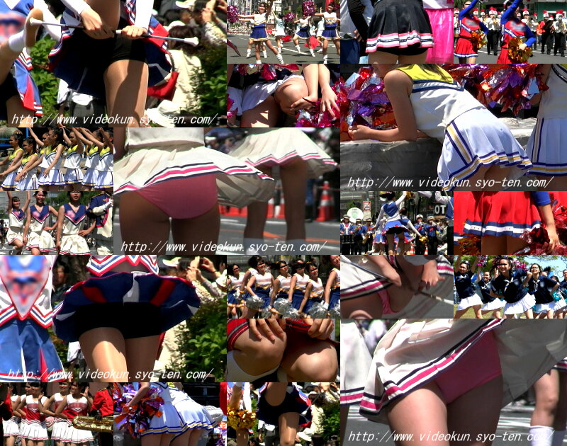 ショッキングピンクのレオタード娘は靴を直すと大きなお尻が丸見えになっていました。銀に青筋のフラッグ娘はスタイルの良い娘が多くカメラは回しっ放しという感じでした。特に目の前のおかっぱの娘に狙いを付けターンなどをして中身が見えた時は感動ものでした。太目の娘が屈むと迫力のお尻が丸見えになりどきどきしました。フロートが始まると地元のデパートのぴちぴち娘たちが白のテニスウェアに赤と白の縞模様のTシャツ姿でフロートの上や外で演技しながらパンチラの大サービス振りでした。すっかり夢中になり汗だくで追っ掛けて撮っていました。続く豹柄のターザン娘も露出はミニから突き出た脚がセクシーで満点でした。白のベレー帽に緑のトップスに白ミニの葱坊主娘も行進しているだけで尻の辺りがちらちらしていました。