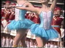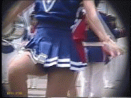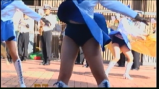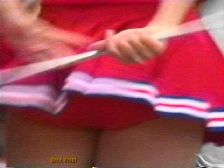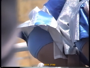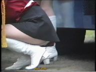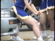 パレードが始まると青や赤のスコート娘たちが途中ターンやキックを繰り返しながら演技していましたが、むちむちした太腿の奥が見えるたびにどきどきしたものです。解散地点まで追い掛けて行くと皆帰り支度をしている最中でした。芝生の上では音楽隊やチアが道具の後片付けをしていて、あちこち動き回っていてたまにパンチラが拝めました。又無防備に車のバンパーに腰掛けてスコートが捲れているチアもいました。