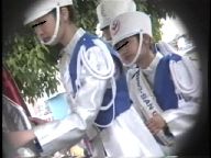 冒頭はパレード出発前で待機しているバトン娘たちです。青スコートの娘は皆凄い超ミニで、唯立っているだけでも白いフリルのアンスコがちらちら見えていました。特にひときわ背の高いボーイッシュな娘は丈が合わないのでしょうか終始見えっ放しで堪らなかったのでしつこく撮っていました。