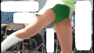 出番を待つ青ウェアのRK大バトン娘たちは、最初もったいぶるのか、なかなか動いてくれませんでしたが、音楽がかかると、やや硬さは見られるもののぷりぷりしたお尻を揺すりながらターンなどを披露してくれました。パレードが始まると、あまり大きな演技は見せてくれず少し残念でしたが、ステージでの演技は最前列の至近距離からだったせいか、派手な動きはありませんでしたがむちむちした太腿からこぼれるお尻など迫力のある画が撮れました。