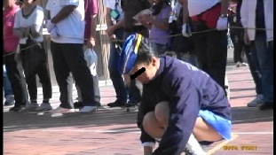 フラッグ隊が演技の練習に入ると、思わず靴下を上げる股間などが撮れていました。