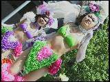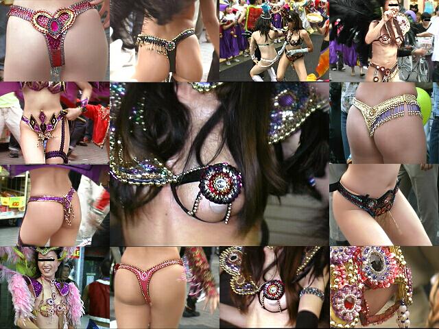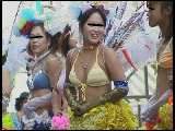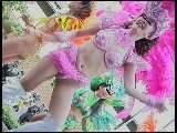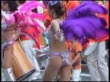 サンバ界での人気随一といわれるチームを、民家脇での出発地点から徹底撮り。本シリーズでもお見かけしたことがある(ギャル系の)お姉さんたちがちらほら。