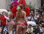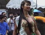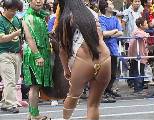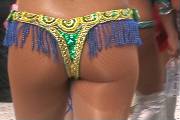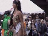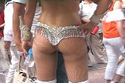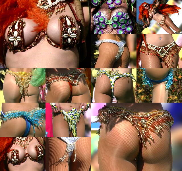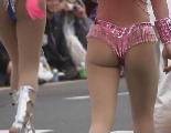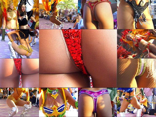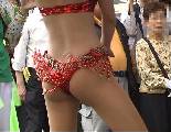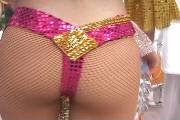 若い、若い。すべて初お目見えのジャパニーズお姉さんたちの、おヘソおナカ丸出しなビキニ(+網タイツ)コスチューム(おナカの下線まで見えてしまうのが、イヤらしくもgoodです)、そして、Tバック集団(のパイオツ&ツーケー&▼地帯)。