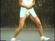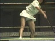 『上級レベルの選手になると、打球の瞬間にスコートが思い切り捲れ上がるようです。それだけプレイに集中し力強く打っているせいでしょう。