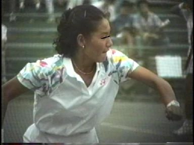 4006「伝承撮り・黄金のテニス伝説(3)〜雉子牟田&神尾選手編」より(実際の映像は、顔出しです)。
