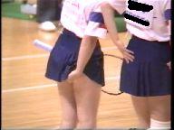 別会場でも色とりどりのウェアが眩しい高校生たちが盛んにパンチラプレイを披露していました。手前ピンクスコートを決めたM高校のマッシュルームカット娘の良く育った体から見え隠れするお尻は、迫力があって見物でした。対戦相手のS高校も、真っ赤なスコートで可愛いパンチラを披露していました』
