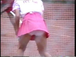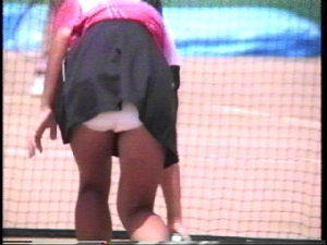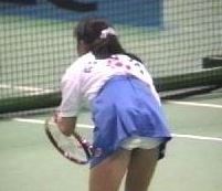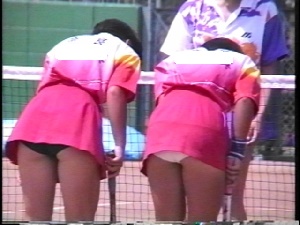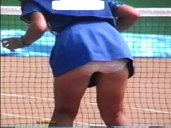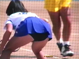 次のAA対TTのダブルス戦ではAAが青スコートに、TTが薄青のスコートに着替えて出ていました。AAは構えているだけで丸見えのお尻がとても眩しく刺激的でした。TTの娘はエラーをした時など思わずお辞儀して後ろの観客にパンチラを披露していました』