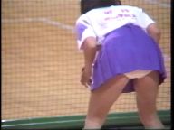 紺のスコートの※※女子大のショートカット娘は、ただ立っているだけでお尻丸見えという凄い超ミニで釘付けでした。対戦の、ピンクのスコートの▼▼□□も控え目な動きながらチラチラするスリムなお尻にそそるものがありました。