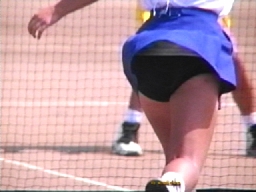 次に、長い脚で駆け回るショートカットの青の娘はNKです。締まった足首が魅力的で、控え目なサーブや構えからは否応無くパンツが見えていて、食い入るように見ていました。