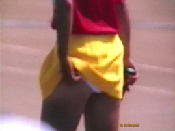 次のTの同チーム同士の対戦は、あの派手な真っ赤なウェアがお気に入りだったこともあり夢中になっていました。選手も上背がありスタイルのいい娘が多く、スコートも短めなのでコートに良く映え、手前でお尻を揺らしながらこぼれるパンチラがとても眩しくてたまりませんでした』