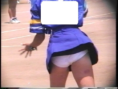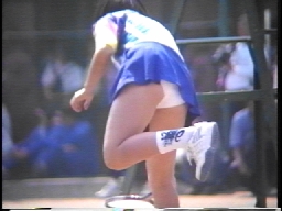 O高校などは、黒ブルマのお尻を揺らしながらの悩ましいプレイでした。他にも青スコートのK高校のように目一杯パンチラしてくれるシーンが盛り沢山でした。瞬間ノイズの入るシーンも有ります』
