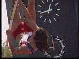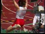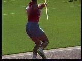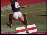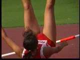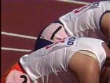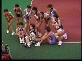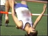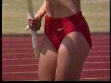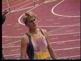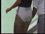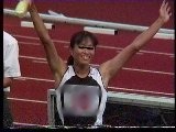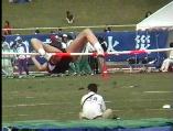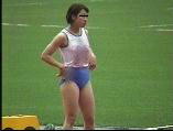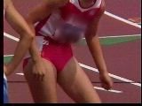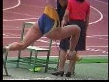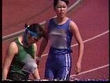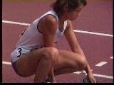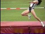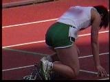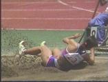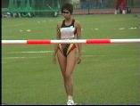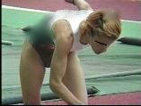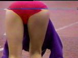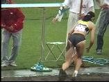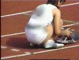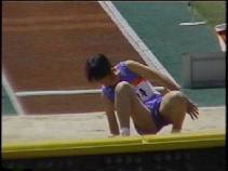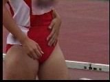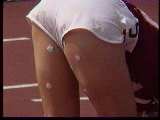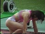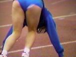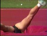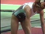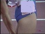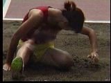 。走り幅跳びの選手たちも、転ばないように注意するため、記録は低調です。まぁ、そんなことはどうだってかまやしませんが、上方から写してるので、たいていブラジャーの肩ひもが覗いてしまってます。跳んだ勢いで、ショートパンツが張りついちゃってる選手もいます。まさに、空前にして絶後の作品(最後の10分間は、スローモーションによる、ハイライトシーンのリプレイとなります)。