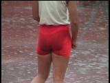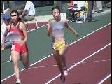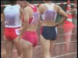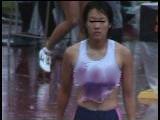 なんと、大雨洪水警報発令中に決行された(女子大生たちの)大会。トラックが鏡状になってしまうほどのどしゃ降りが全篇つづきます(2003年頃の映像から)。