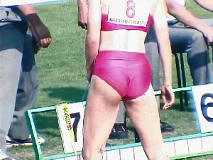 三段跳び(ブルマーなお二人ちゃんとスパッツちゃんたち)、100mハードル(走り幅跳びでも活躍の池田K美子選手登場)、100m(有名選手連)etc.