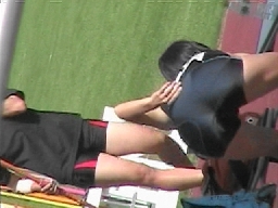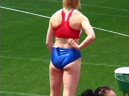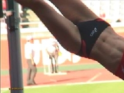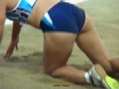 ……三段跳び、走り幅跳びetc. (紺ブルの池田選手が、ひっきりなしのサイン攻めで、おヘソ出しのブルマーのまんまで対応、この妙になまめかしいお姿に、1票